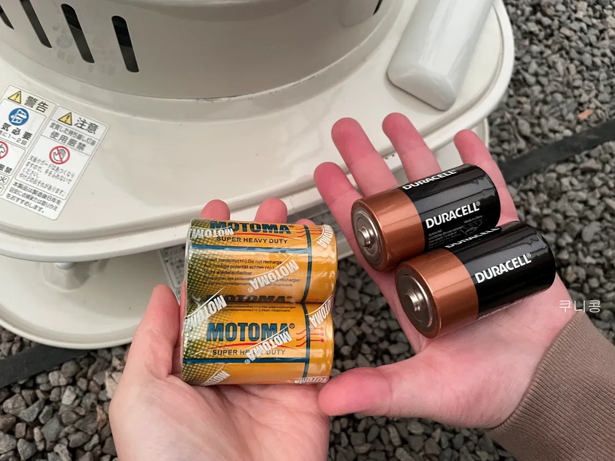 평소에 사용하는 배터리 종류가 아니어서, 난로를 사용한다면 대형 건전지를 미리 구비해두시는 것도 좋을 것 같습니다.