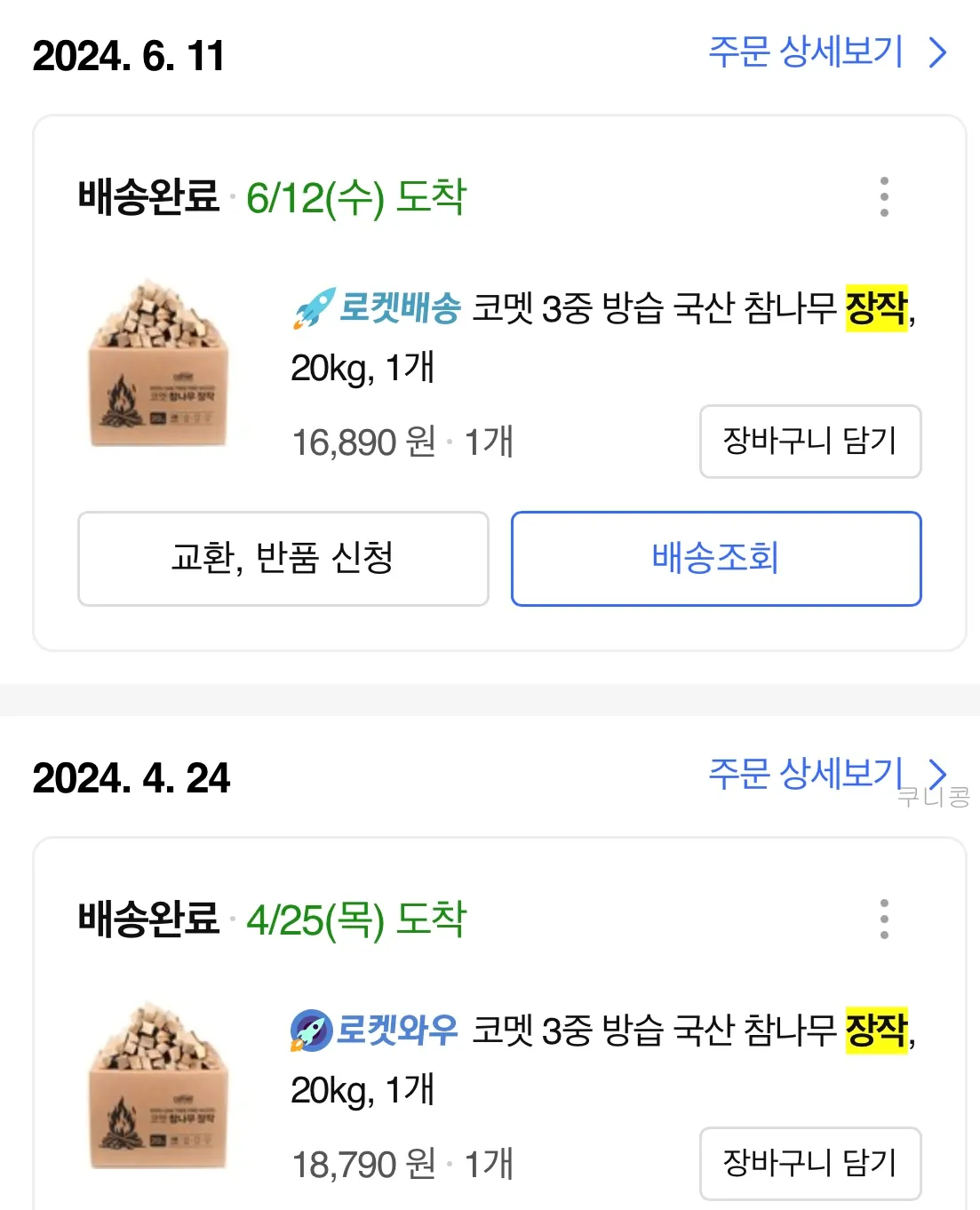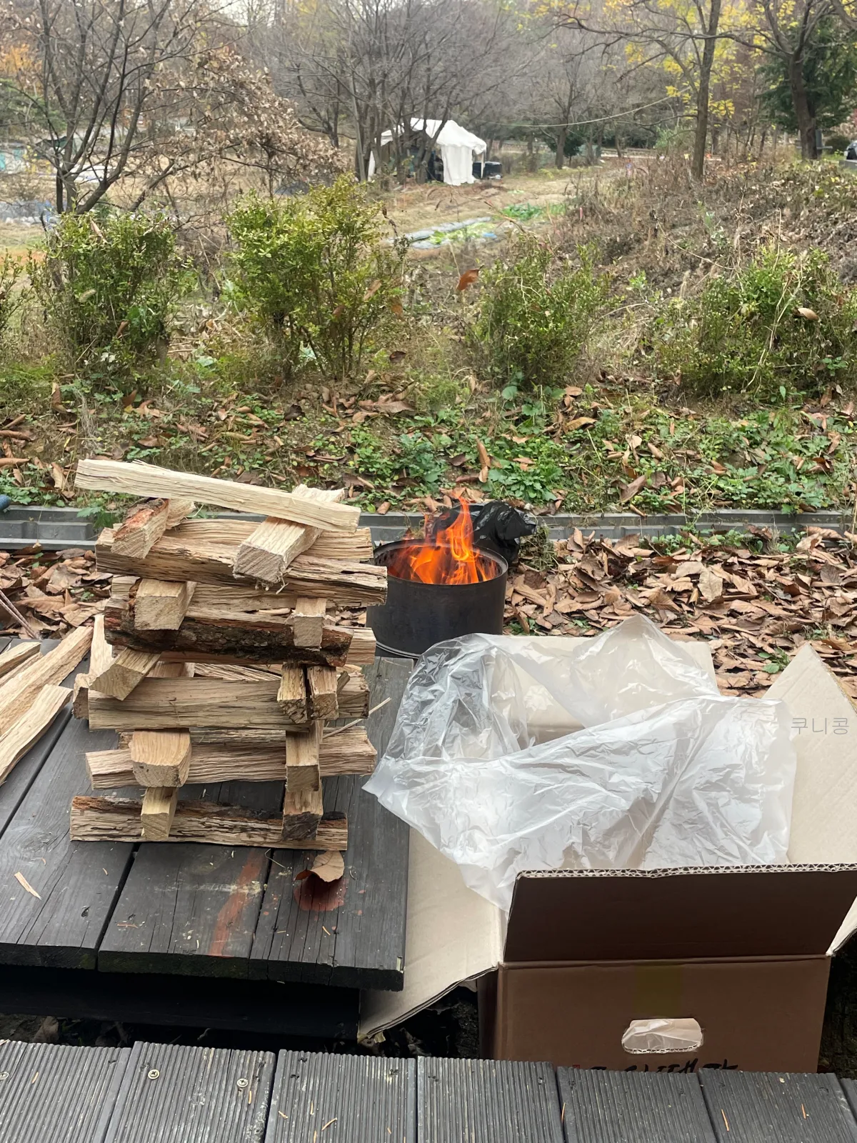 장작은 쿠팡에서 여러번 구매해서 사용했는데 이번에는 품절이 되어서 주문하지 못했어요 ㅠㅠ 쿠팡 장작이 나무 두께도 거의 일정하고, 연기가 안나서 거의 여기에서만 주문을 했거든요! 이번엔 다른곳에서 알아보다가 후기 좋은 곳으로 찾았는데 새로 산 장작도 잘 탔어요.