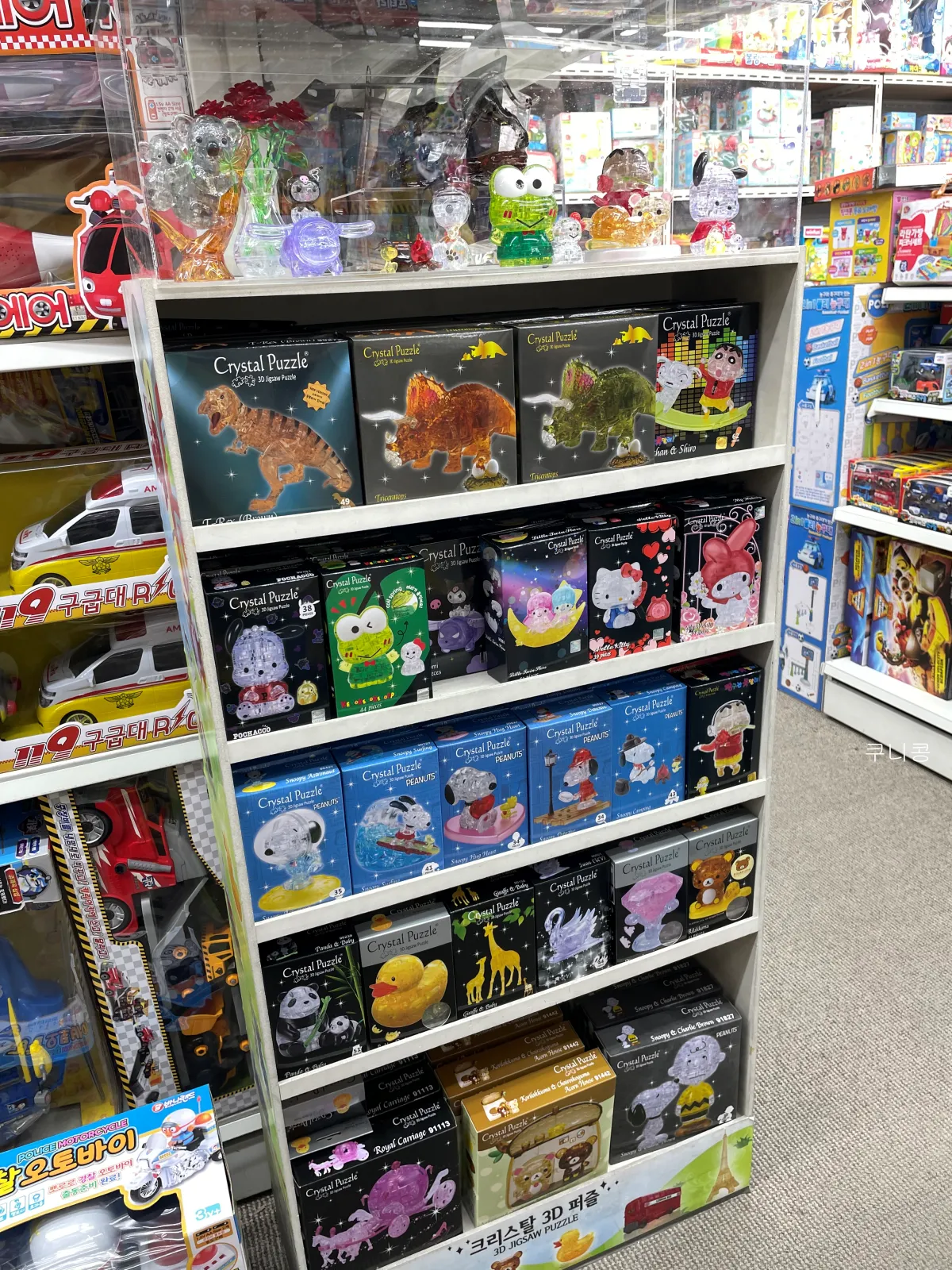 옆에 있는 코너로 가니 크리스탈 퍼즐이 있었습니다! 완구시장에 도착해서 첫번째로 갔던 동아완구 다음으로 스누피템을 보게 된 곳이에요.