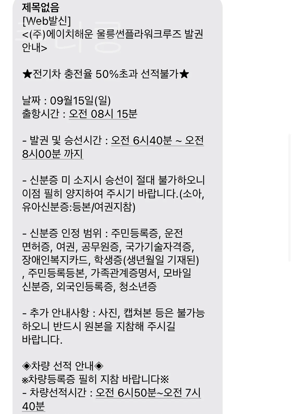 울릉도 추석연휴 크루즈 예약시기 및 가족여행 예상경비 (차량 운임포함)