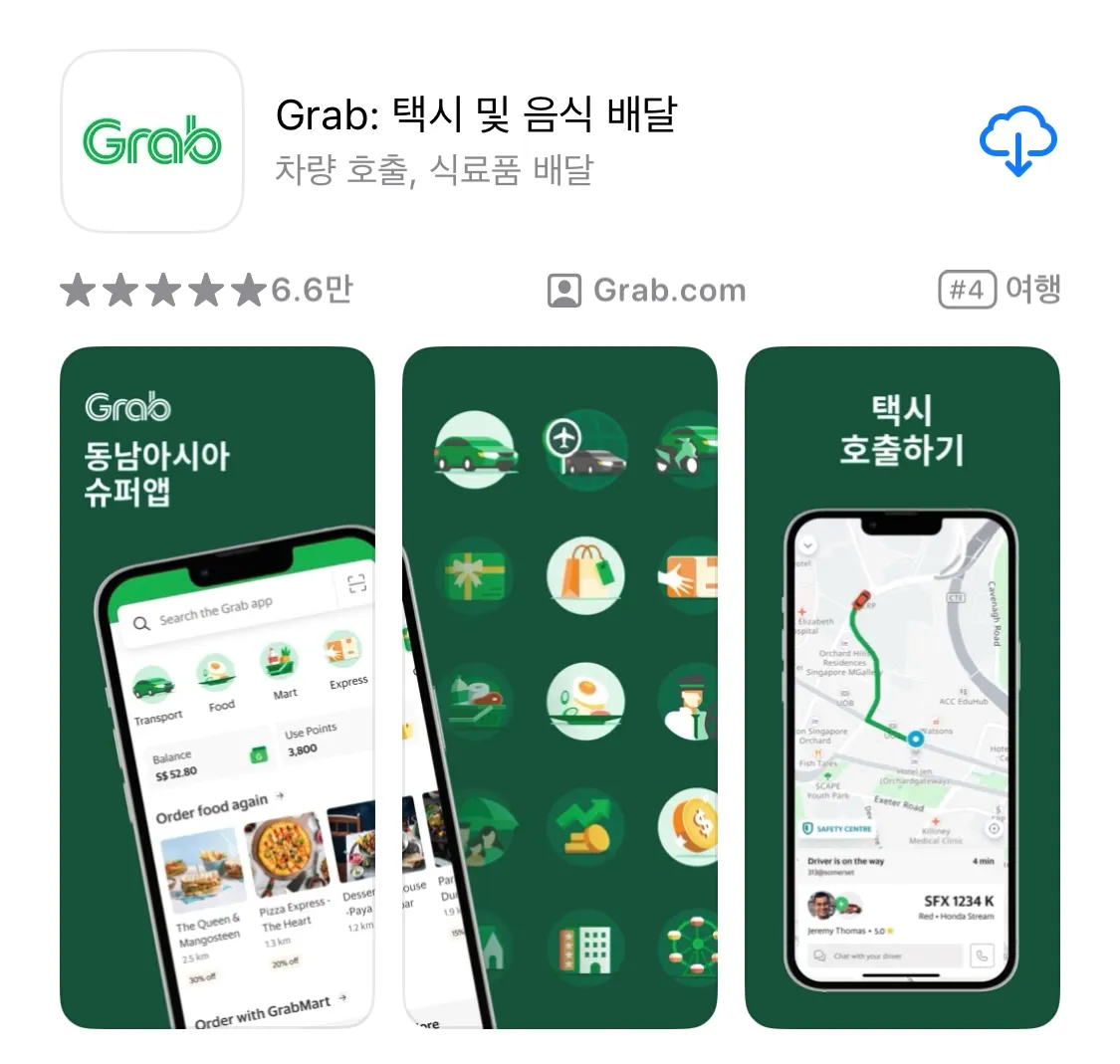 언어가 어려웠어서 대중교통보다는 택시를 이용하는 게 수월할 것 같더라고요. 한국처럼 거리에서 택시가 잡히는 상황이 아니다 보니, 출도착지를 정해서 이동하는 중간에도 확인할 수 있는 그랩을 추천드려요. 예상 요금도 미리 확인할 수 있어 계산하는데도 도움이 되었어요.