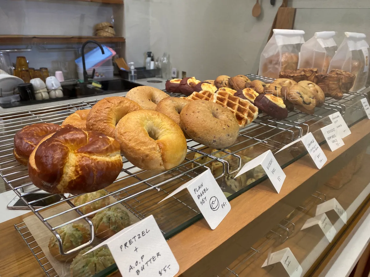 베이글과 빵류는 가격이 평균 50~80바트정도 (한화 2천원~3천원) 였어요.