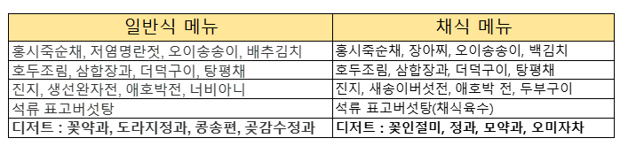 별빛야행 행사를 즐기며 맛 볼 수 있는 수라상에 대해 알아보겠습니다. 식사 비용은 입장료에 포함되어 있으며 12첩 식사를 체험할 수 있습니다. 채식 메뉴를 희망하시는 분은 행사일 3일 전 티켓링크 콜센터 1588-7890으로 사전 신청 꼭 해주셔야 합니다.
